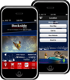 Dockside Marine is a premiere full service boat dealership located on beautiful Lake Conroe in Montgomery, Texas serving the Greater Houston Area and SE Texas region. We carry a full line of new and used Wake, Pontoon, Performance, Fishing, and Pleasure boats. We are proud to offer world class brands including MasterCraft, Nautique, Harris Flotebote Pontoons, Edgewater Performance fishing boats, and Formula Powerboats and Cruisers. This is the official Dockside Marine Mobile App