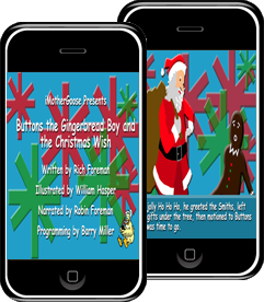 iMotherGoose is proud to present our first original story, Buttons the Gingerbread Boy and the Christmas Wish. Just in time for the holidays, this Christmas tale describes how a Ginger Bread Boy comes to life and brings cheer to a kind couple. There's even a guest appearance from Santa Claus. With original art from William Hasper and lovingly narrated by Robin Foreman, this app is a must for your kids during the holidays.
