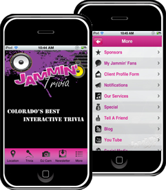 JAMMIN' Trivia provides the best Trivia game and mobile entertainment in Denver, CO and other metro city areas for over 10 years. JAMMIN' Trivia is the one of the most recognized Brands for Nightlife entertainment and Elite events across the country. JAMMIN' Trivia is an interactive trivia app that will host daily trivia questions that qualify for extra points at our locations. You can find out where & when we are performing. Come see the specials and get some extra points in the process. Download it today!