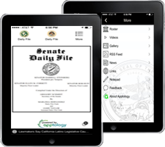 As a public service, Apptology is publishing both the California Senate and Assembly's Daily File. The Daily File is the agenda for the two houses of the California Legislature and is maintained by the Daily File Chief Clerk.